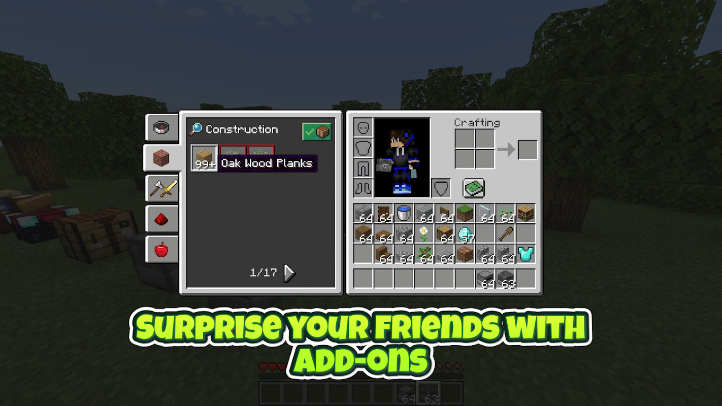Minecraft PE-এর জন্য Java UI Mod হল এমন একটি অ্যাপ্লিকেশন যা আপনাকে সহজেই ভ্যানিলা ডিলাক্স ডাউনলোড এবং ইনস্টল করতে দেয়: Java UI + Mixed UI + PvP UI অ্যাড-অন আপনার অ্যান্ড্রয়েড ডিভাইসে Minecraft পকেট সংস্করণ গেমে। আমাদের 1-ক্লিক ইনস্টলারকে ধন্যবাদ যা Minecraft Mods, Addons, Maps, Skins, এবং Texture Packs ইনস্টল করা অত্যন্ত সহজ করে তোলে।