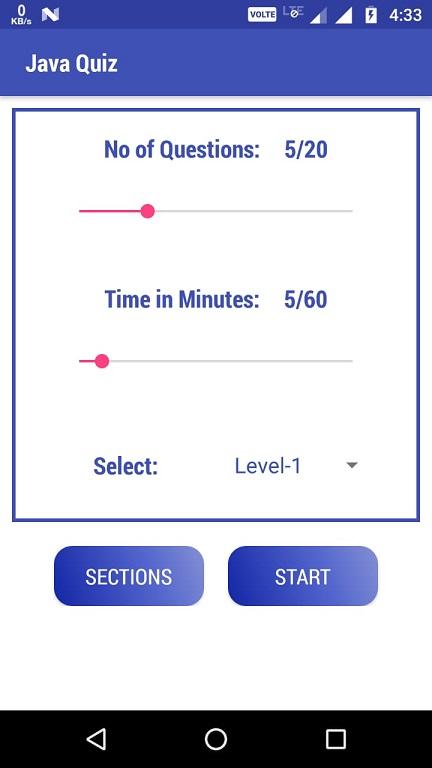 -> Choose number of questions, time in minutes, Level of test and finally select interested Java section before staring the Test.