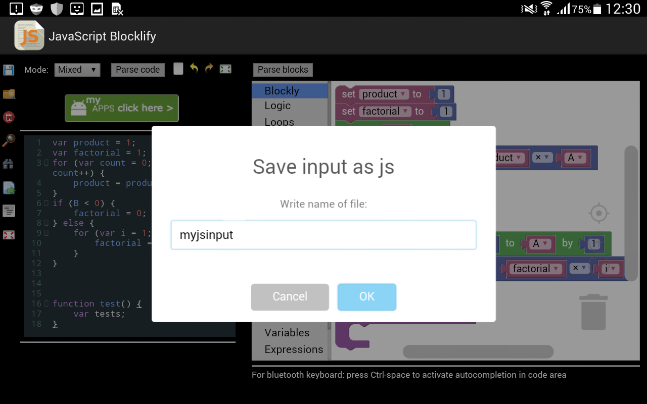 * কোড এডিটরে অ্যান্ড্রয়েড ফাইল সিস্টেম থেকে জেএস ফাইল খুলুন