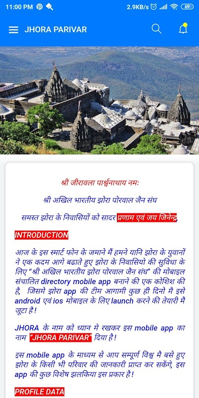 আজকের স্মার্ট ফোনের যুগে, আমরা ঝোড়ার বাসিন্দাদের সুবিধার্থে "SHREE AKHILHHHHARIYA JHORA PORWAL JAIN সংহ" এর একটি মোবাইল চালিত ডিরেক্টরি অ্যাপ তৈরি করতে এক ধাপ এগিয়ে গেছে।