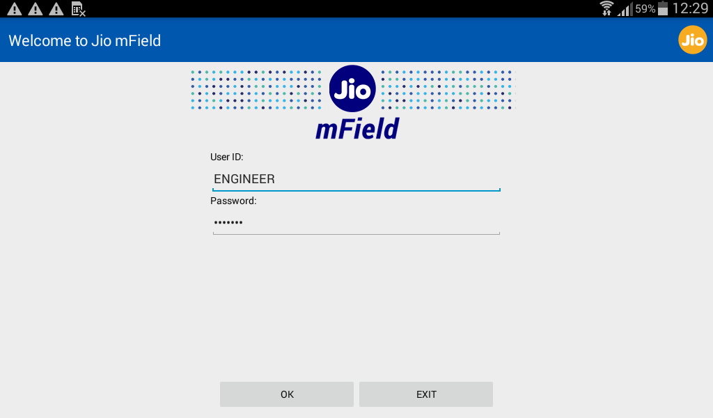 Jio mField হে & M এর সম্পদ এর সাথে সম্পর্কিত কাজের আদেশ প্রক্রিয়াকরণের জন্য ব্যবহৃত একটি অ্যাপ্লিকেশন। আবেদন প্রমাণ ভিত্তিক রক্ষণাবেক্ষণ, মানচিত্র, রিজার্ভ ও প্রত্যাবর্তন উপাদান, সরঞ্জাম ইতিহাস, প্রজ্ঞাপন আপডেট শৃঙ্খলা অবসান এক্সেস উপর দোষ অবস্থান allowas।