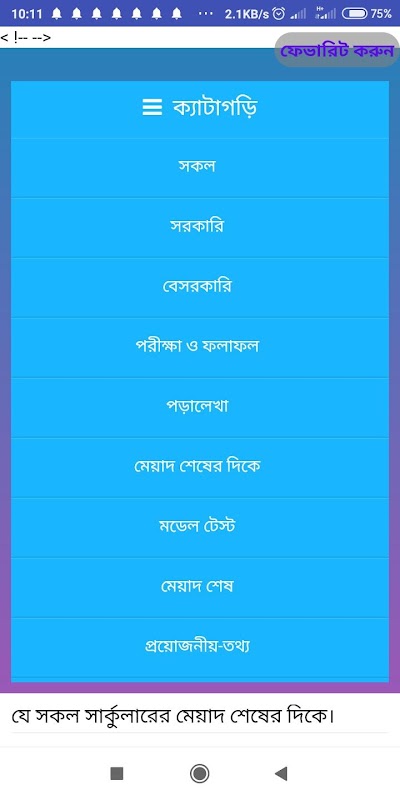 যারা চাকরি খুঁজছেন তাদের জন্য অত্যন্ত প্রয়োজনীয় এপ। এখানে কোনো ভূয়া সার্কুলার পাবেন না এবং প্রতি মুহূর্তের চাকরির সার্কুলার যা অনলাইনে বা প্রতিদিন পত্রিকায় ছাপা হয় সেখান থেকে নিয়ে সম্পূর্ণ সঠিক (আমরা ভূয়া সার্কুলার বাদ দিয়ে থাকি।) সার্কুলার আপনাদের হাতে এই এপের মাধ্যমে পৌঁছিয়ে দিয়ে থাকি। সেই সাথে পাবেন প্রতি মুহূর্তের পরীক্ষার ফলাফল ও পরীক্ষা সংক্রান্ত নোটিশ। বয়স বের করার জন্য বয়স ক্যলকুলেটরও (এজ ক্যালকুলেটর) রয়েছে এপটিতে। চাকরির প্রস্তুতির জন্য পড়ালেখা বাটনে পাবেন অনেক প্রয়োজনীয় তথ্য। এক ক্লিকে ডাউনলোড সুবিধা আছে এপটিতে। পছন্দের সার্কুলার ফেবারিট করে রাখার সুবিধা সহ অনেক গুলো সুবিধা পাবেন এপটিতে।