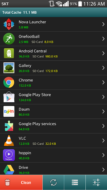 The major feature is checking and deleting of external (emulated SD Card) cache.