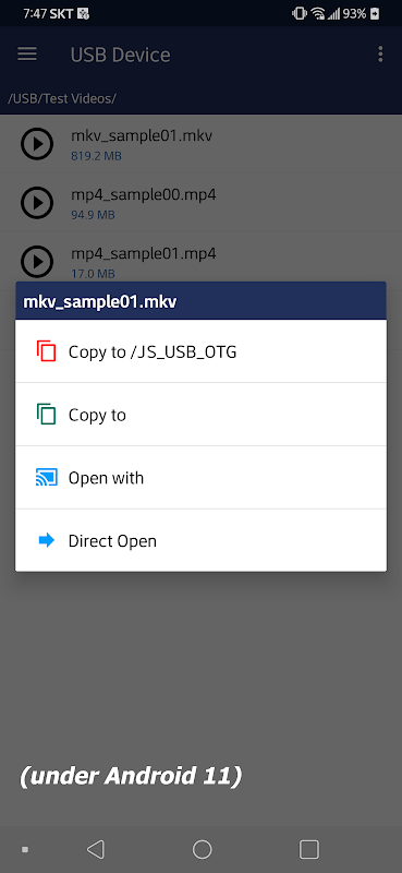 - অ্যান্ড্রয়েড ১১ এর অধীনে ডিভাইসগুলি উপরের বিধিনিষেধ ছাড়াই আগের মতোই থাকে। (স্থানীয় স্টোরেজে নির্বাচিত ফোল্ডারে অনুলিপি করুন / স্থানীয় স্টোরেজ ফাইল ম্যানেজার ফাংশন)