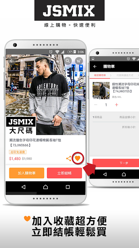 JSMIX大尺碼服飾推出行動購物APP囉!讓您也可享有一鍵購物的方便,只需三個步驟就可輕鬆完成購物,享有線上不定時推出優惠與折扣,立即掌握粉絲動態專頁。