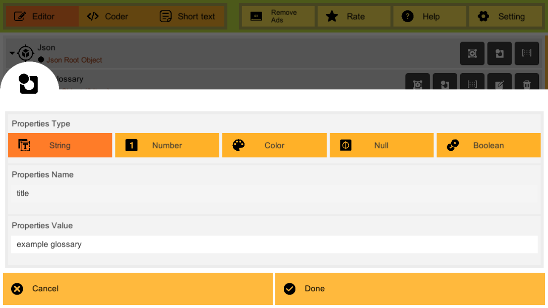 এটি এমন একটি অ্যাপ্লিকেশন যা আপনাকে json ডেটা সোর্স কোড সম্পর্কে কোনো জ্ঞান ছাড়াই দ্রুত json ডেটা ডিজাইন করতে সাহায্য করে