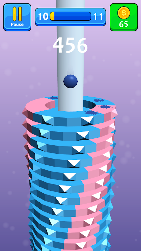 এক্ষেত্রে বল প্ল্যাটফর্মের মাধ্যমে নীচে পড়ে। ব্রেক এবং ক্রাশ এড়াতে আপনি টাওয়ারটি ঘোরান।