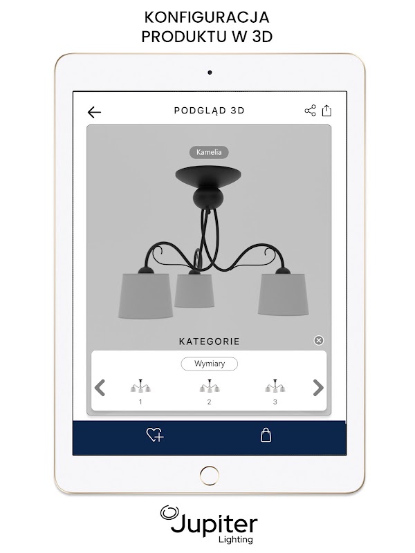 জুপিটার এআর অ্যাপ্লিকেশন আপনাকে রিয়েল টাইমে নির্বাচিত ঝাড়বাতি, বাতি, সিলিং ল্যাম্প বা ওয়াল ল্যাম্প স্থাপন এবং সামঞ্জস্য করার অনুমতি দেবে। অগমেন্টেড রিয়েলিটি টেকনোলজির জন্য ধন্যবাদ, আপনি যেকোন রুমে আলাদা আলাদা পণ্য বা তাদের কম্বিনেশন আপনার সামনেই দেখতে পাবেন।