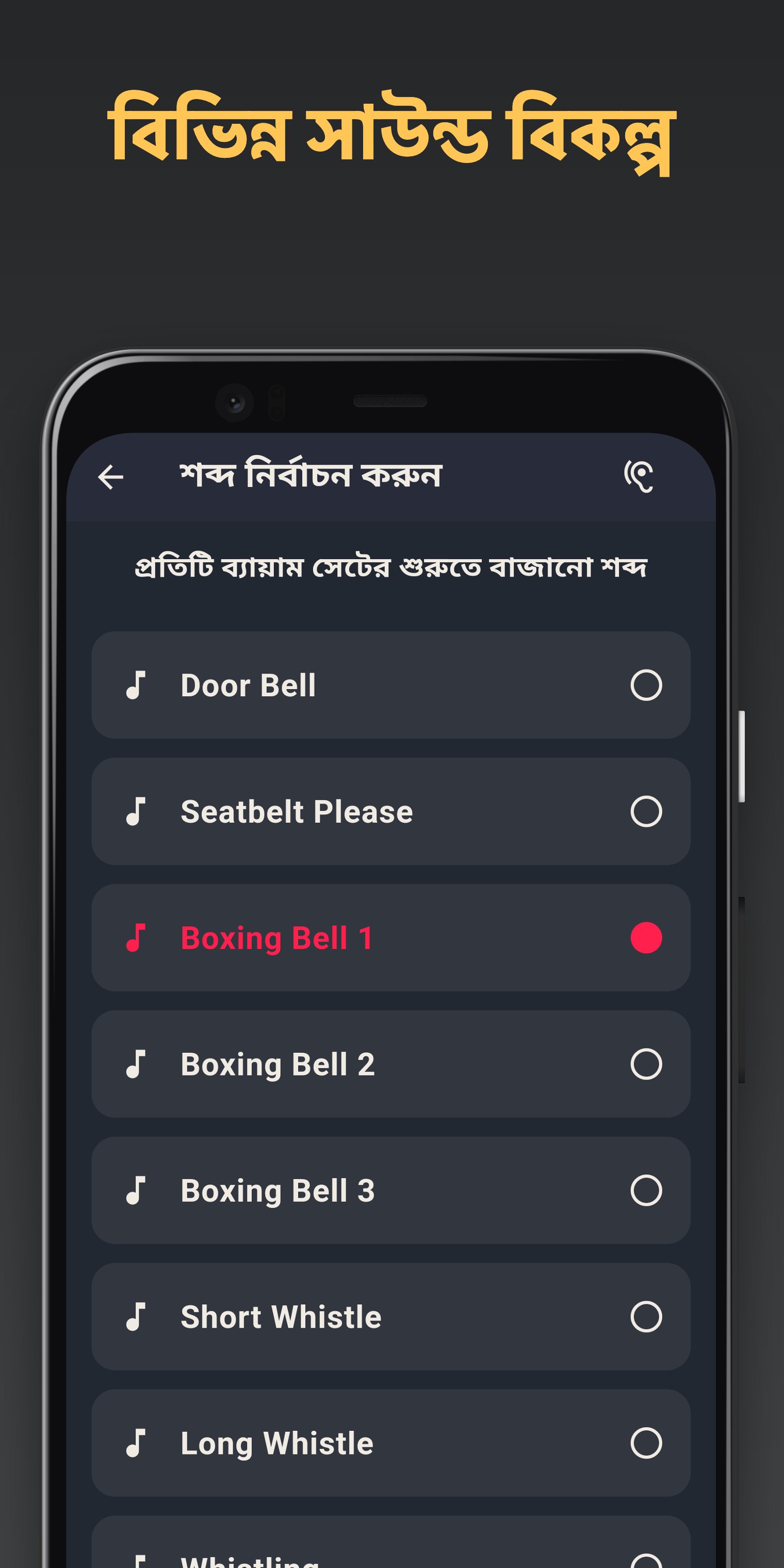 বিভিন্ন এলার্ম সাউন্ড বিকল্প: ওয়ার্কআউট, যোগা এবং ধ্যানের মতো কার্যকলাপের জন্য উপযুক্ত বিভিন্ন এলার্ম সাউন্ড থেকে বেছে নিন।