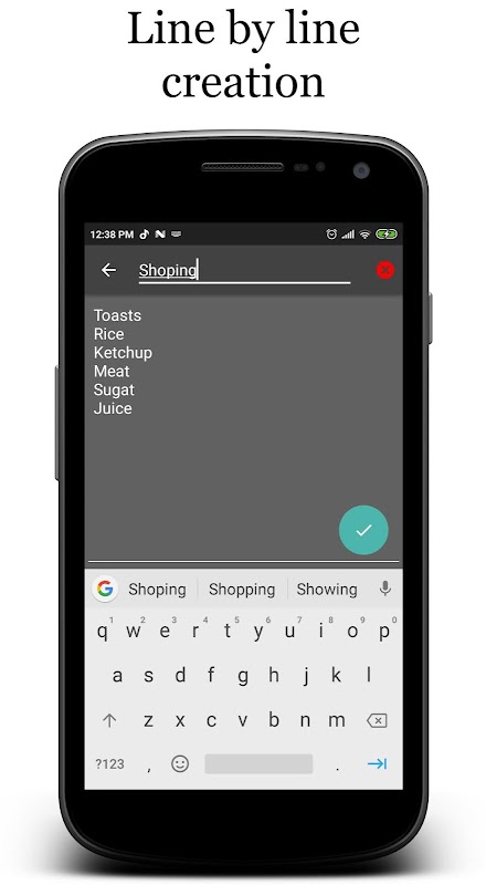 একটি তালিকা তৈরি করা একটি নোটপ্যাডের মাধ্যমে ঘটে, এতে একটি নতুন লাইনে স্থানান্তর একটি নতুন আইটেম তৈরি করে। যারা পৃথকভাবে পয়েন্ট তৈরি করতে চান তাদের জন্য একটি "+" বোতাম রয়েছে।