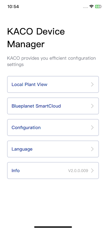 KACO নতুন শক্তির NH সেটআপ অ্যাপটি আপনাকে আপনার নতুন ব্লুপ্ল্যানেট এনএইচ ইনভার্টারকে দ্রুত এবং আরামদায়কভাবে কনফিগার এবং শক্তি যোগাতে দেয়।
