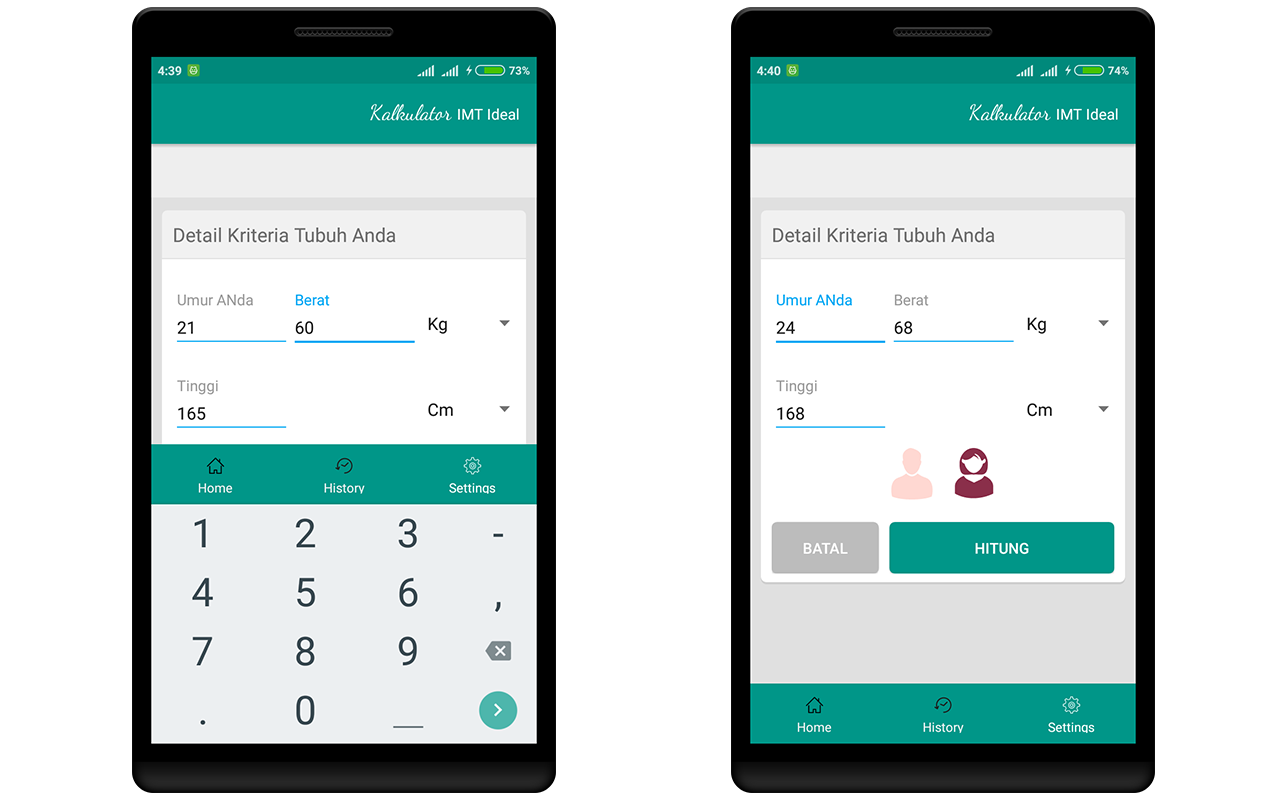 Catatan: Nilai Indeks Masa Tubuh (IMT) yang diberikan oleh aplikasi ini hanya untuk tujuan informasi, untuk keperluan medis silahkan konsultan ke dokter anda