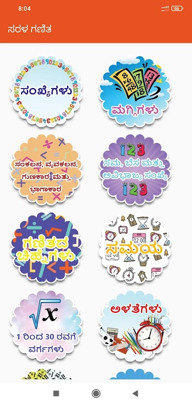কন্নড় বাচ্চাদের শেখার অ্যাপের বিষয়বস্তু নিচে দেওয়া হল।