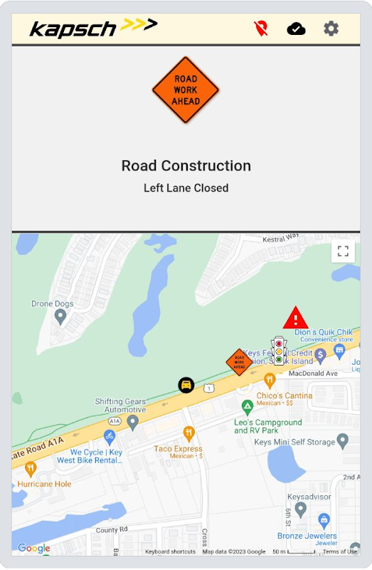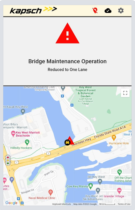 Kapsch ট্রাফিক অ্যাসিস্ট অ্যাপটি রাস্তা ব্যবহারকারীদের সেলুলার সংযোগের মাধ্যমে সর্বশেষ ট্রাফিক ব্যবস্থাপনা সম্পর্কিত তথ্য পেতে সক্ষম করে। অ্যাপটি বিদ্যমান সেলুলার নেটওয়ার্ক (3G/4G/5G) ব্যবহার করে এবং ব্যবহারকারীর সেটিংস এবং অবস্থানের উপর ভিত্তি করে ব্যবহারকারীকে প্রাসঙ্গিক তথ্য প্রদর্শন করে।