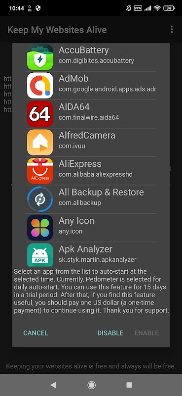 এই অ্যাপটির উদ্দেশ্য হল পর্যায়ক্রমে আপনার সাইটগুলি দিনে কয়েকবার পরিদর্শন করা এবং এইভাবে প্রতি মাসে কয়েকশো হিটের সংখ্যা বজায় রাখা, যা আপনার সাইটকে বিনামূল্যে সার্ভারে মুছে ফেলা থেকে আটকাতে যথেষ্ট হবে৷