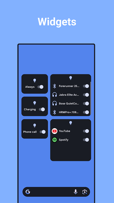 স্ক্রিন অন কলের সময়, নির্দিষ্ট অ্যাপ ফোরগ্রাউন্ডে থাকা সময়, ব্লুটুথ ডিভাইসের সাথে সংযুক্ত থাকা সময়, উইজেটস এবং দ্রুত সেটিংস টাইলসহ উন্নত বৈশিষ্ট্য আনলক করুন। আপনার স্ক্রিন কখন এবং কিভাবে অন থাকবে তার উপর সম্পূর্ণ নিয়ন্ত্রণ পান।