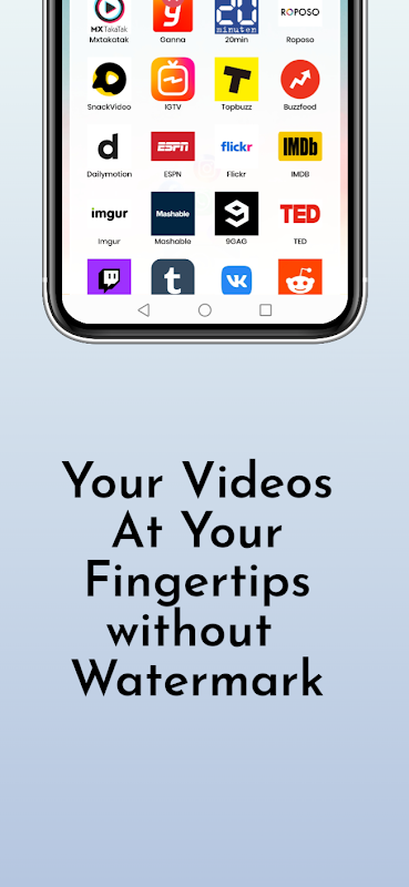 অস্বীকৃতি: এই অ্যাপটি উপরে উল্লিখিত সোশ্যাল মিডিয়া কোম্পানিগুলির সাথে সম্পর্কিত নয়। এটি একটি ক্লোন অ্যাপ নয়, শুধুমাত্র একটি উৎপাদনশীল ভিডিও ডাউনলোডার অ্যাপ এবং স্ট্যাটাস সেভার টুল।