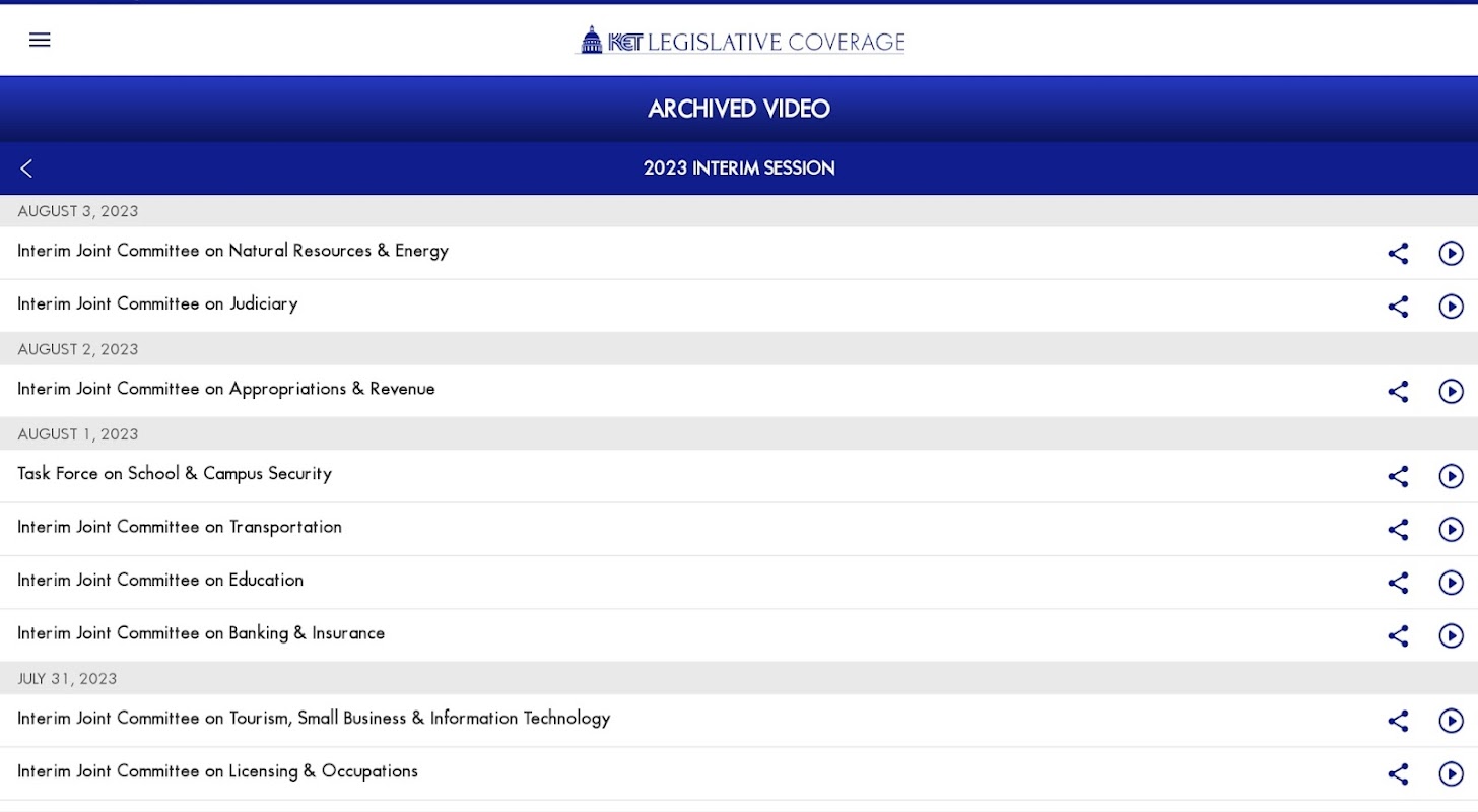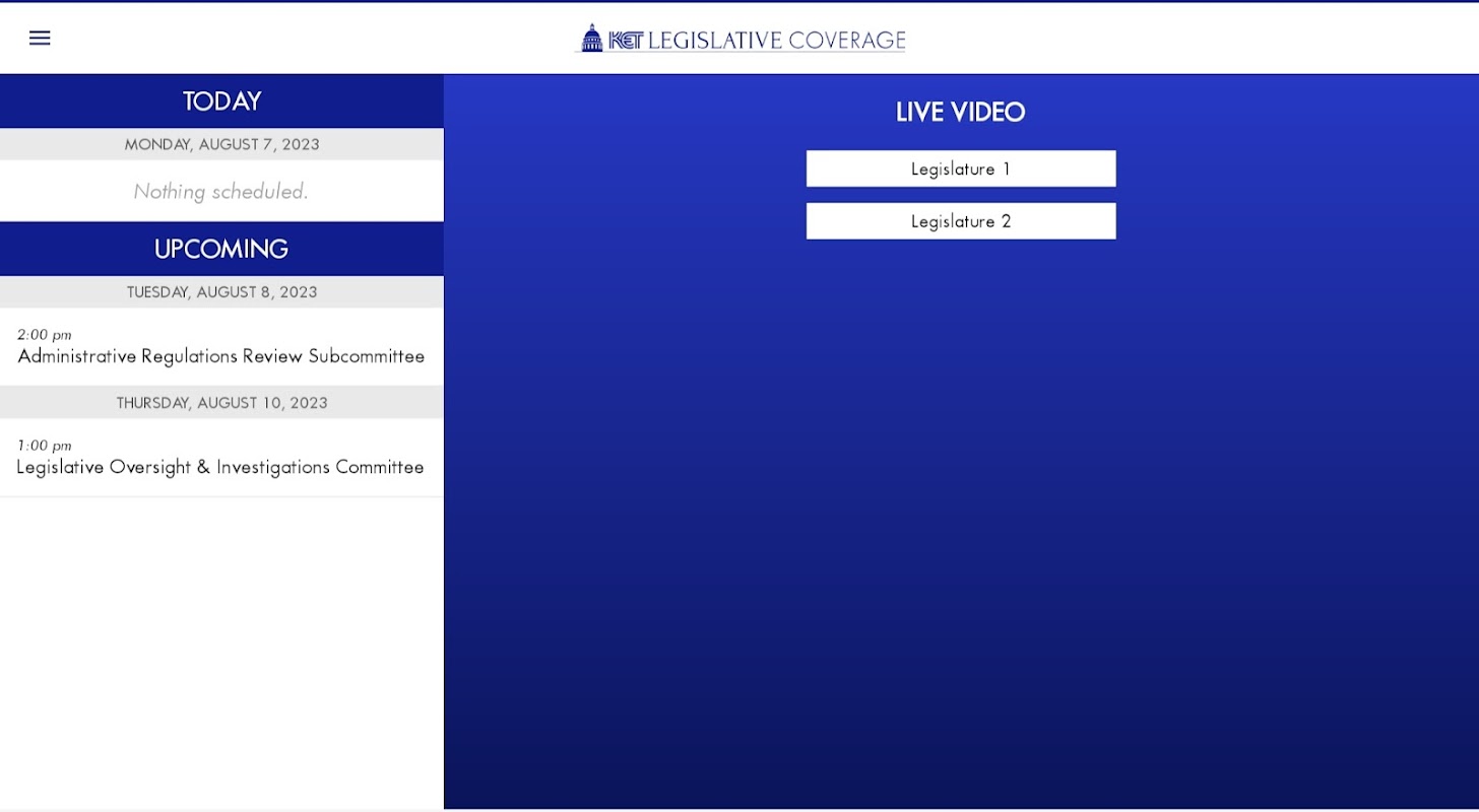 লেজিসলেটিভ কমিটি সভা ও চেম্বার সেশন, লেজিসলেটিভ আপডেট, কেনটাকি টুনাইট এর লাইভ এবং সংরক্ষণাগার ভিডিও সঙ্গে, কেনটাকি সাধারণ পরিষদের অনুসরণ, এবং কেনটাকি মন্তব্য করুন.