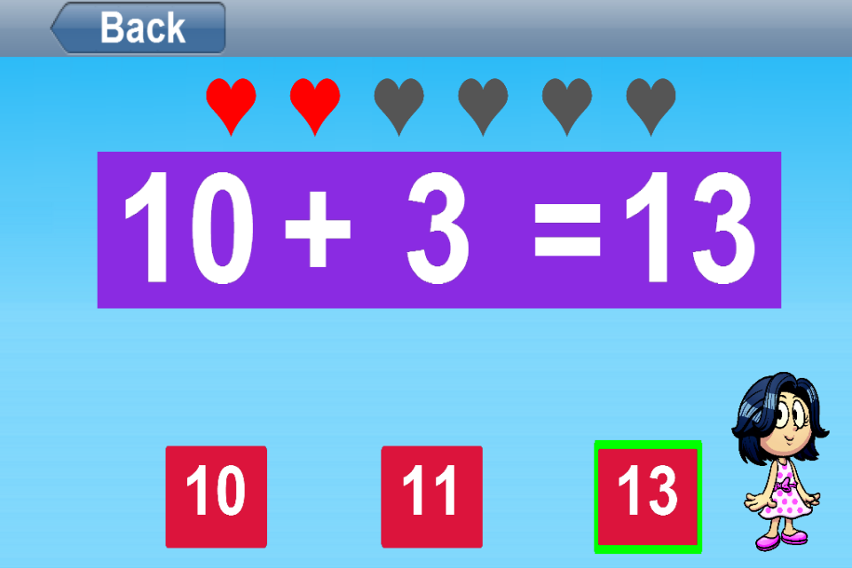 এটি একটি বিনামূল্যে শিশুদের খেলা. খেলা শিখতে এবং 10 নম্বর যোগ মনে রাখবেন, 20 পর্যন্ত সংখ্যার যোগ, আপ থেকে 10 নম্বর এবং বিয়োগ গণিত প্রশ্নের সমাধান এবং হৃদয় দ্বারা ফলাফল মনে প্রেম হবে 20. আপনার ছাগলছানা পর্যন্ত সংখ্যার বিয়োগ করতে সাহায্য করে.