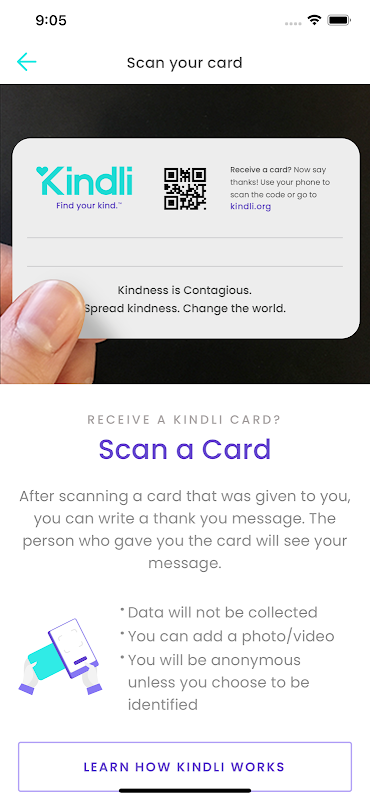 আমরা বিশ্বজুড়ে 1 বিলিয়ন করুণামুক্ত আচরণ তৈরি এবং ট্র্যাক করার চেষ্টা করার সাথে সাথে আমাদের সাথে যোগ দিন। কিন্ডলি কার্ড দয়া করে সহজ এবং মজাদার! আপনার প্যাকের প্রতিটি কার্ড বেনামে রয়েছে তবে পিছনে অনন্য কিউআর কোডটি আসে যা আপনার কিন্ডলি অ্যাকাউন্টে আবদ্ধ। এমনকি ব্যক্তিগত কার্ডের জন্য আপনি নিজের কার্ডে থাকা বার্তাটি কাস্টমাইজ করতে পারেন।