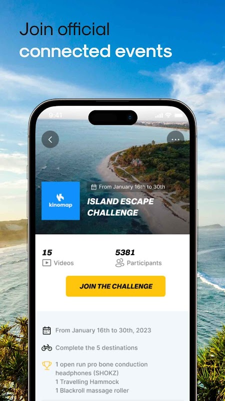 কিনোম্যাপ সাইকেল চালানো, দৌড়ানো, হাঁটা এবং রোয়িংয়ের জন্য একটি ইন্টারেক্টিভ ইনডোর প্রশিক্ষণ অ্যাপ্লিকেশন, যা একটি ব্যায়াম বাইক, হোম প্রশিক্ষক, ট্রেডমিল, উপবৃত্তাকার বা রোয়িং মেশিনের সাথে সামঞ্জস্যপূর্ণ। অ্যাপ্লিকেশনটি বিশ্বের হাজার হাজার রুটের সাথে বৃহত্তম ভূ-অবস্থানযুক্ত ভিডিও শেয়ারিং প্ল্যাটফর্মে অ্যাক্সেস প্রদান করে। অ্যাপ্লিকেশনটি সরঞ্জামের নিয়ন্ত্রণ নেয় এবং স্বয়ংক্রিয়ভাবে নির্বাচিত পর্যায় অনুসারে বাইকের প্রতিরোধ বা ট্রেডমিলের প্রবণতা পরিবর্তন করে। এটি 'বাড়িতে প্রশিক্ষণ' নয়, এটিই আসল জিনিস!