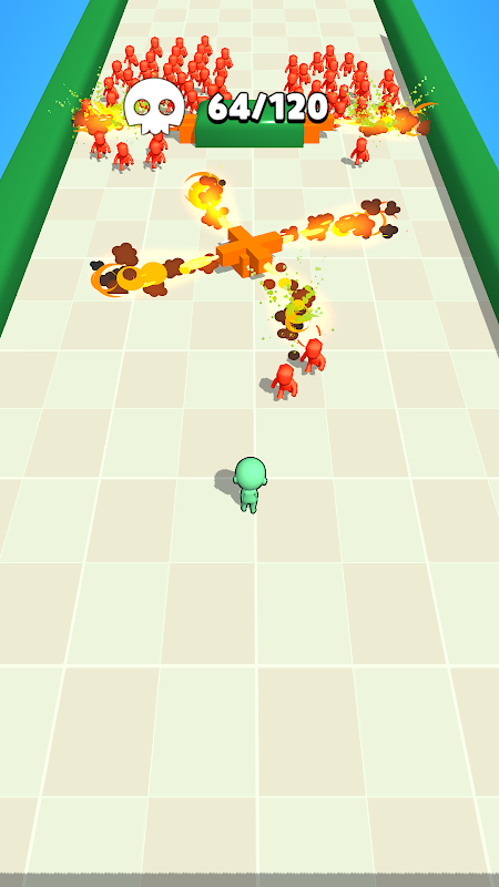 Lots of enemies will come towards you. Don't be afraid, just run away and let the moving obstacles clear them for you.