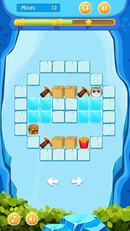 It is a funny puzzle game about a kitten! Everybody knows that cats eat more during the winter and now this cute kitten is so hungry, and it wants something to eat. Your task is to help it get the food with your mind.
