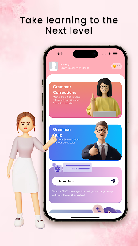 এআই সহ কোরিয়ান শিখুন: তাত্ক্ষণিক সংশোধন, কুইজ এবং সাবলীলতা বৃদ্ধির জন্য চ্যাট করুন!