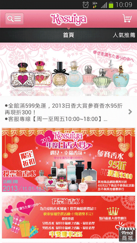 Kosuiya日系香水 正式在手機版上與大家見面了!免費的應用程式提供香香粉絲們簡單又便利的購物新選擇。APP一指下載,就能瀏覽日本目前最流行、最受歡迎的香氛產品,走到哪裡都能輕鬆購~;無論率性、甜美、優雅或性感,在Kosuiya,都可以找到專屬的幸福香氛。