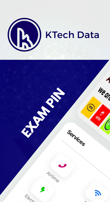 KTECHDATA হল একটি মূল্য সংযোজন পরিষেবা প্ল্যাটফর্ম যা ব্যক্তি এবং ব্যবসাগুলিকে এয়ারটাইম, ডেটা বান্ডেল, বিদ্যুৎ বিল, কেবল টিভি, পরীক্ষার পিন এবং আরও অনেক কিছুর অ্যাক্সেস প্রদান করে।