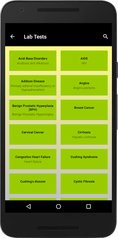এই অ্যাপ্লিকেশনটি ল্যাবরেটরিতে সাধারণ পরীক্ষা সম্পর্কে সাধারণ তথ্য প্রদান করার জন্য তৈরি করা হয়েছে। এর মধ্যে পরীক্ষার সাধারণ পরিসর অন্তর্ভুক্ত রয়েছে। এটি পরীক্ষাগারের বেশিরভাগ দিককে কভার করে। ল্যাবরেটরি রিকোয়েস্ট ফর্ম, হেমাটোলজি, লিভার ফাংশন, সংক্রামক রোগ, জমাট বাঁধা, কার্ডিয়াক ব্লাড টেস্ট, টর্চ, সিরাম আয়রন, কিডনি ফাংশন, টিউমার মার্কার, ব্লাড গ্রুপিং, প্যানক্রিয়াটিক ফাংশন, ডেঙ্গু জ্বর, লিপিড প্রোফাইল, আর্থ্রাইটিস, ইউরিন এবং স্টুল টেস্ট, ইলেক্ট্রোলাইটস, বন্ধ্যাত্ব, বীর্য বিশ্লেষণ, ডায়াবেটিস পরীক্ষা, হেপাটাইটিস, অণুজীব, ধমনী, প্রজনন, রোগ, প্রোটিন ইলেক্ট্রোফোরেসিস, থাইরয়েড হরমোন, টেস্ট ডিরেক্টরি, সমালোচনামূলক মূল্য তালিকা, ভ্যাকুটেইনার, মাইক্রোবায়োলজিক্যাল নমুনা।