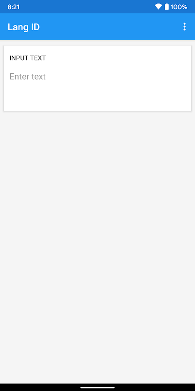 এই অ্যাপ্লিকেশনটিতে প্রদত্ত পাঠ্যটি যে প্রাকৃতিক ভাষায় লেখা হয়েছে তা সনাক্ত করার জন্য একটি সম্ভাব্য মডেল ব্যবহার করে।