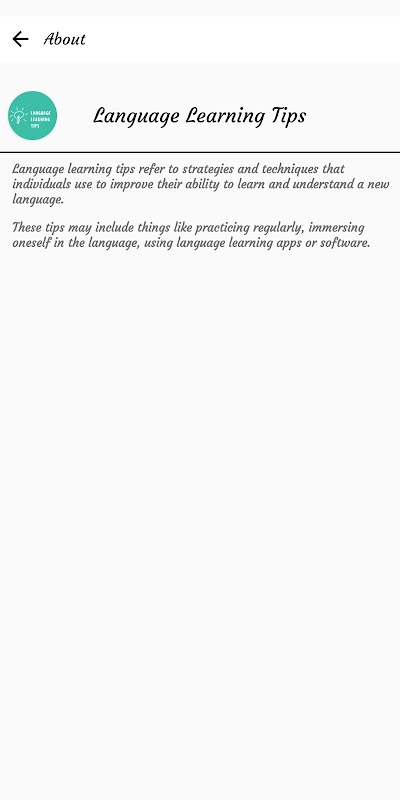 কার্যকরী ভাষা শেখার টিপসের মধ্যে রয়েছে নিয়মিত অনুশীলন করা, পড়া, শোনা এবং কথা বলার মাধ্যমে ভাষাতে নিজেকে নিমজ্জিত করা, স্থানীয় ভাষাভাষী বা ভাষা শিক্ষকদের কাছ থেকে প্রতিক্রিয়া এবং সংশোধন চাওয়া এবং অগ্রগতি পরিমাপ করার জন্য বাস্তবসম্মত লক্ষ্য নির্ধারণ করা। উপরন্তু, পাঠ্যপুস্তক, ভাষা শেখার অ্যাপস এবং ভাষা বিনিময় প্রোগ্রামের মতো বিভিন্ন শিক্ষার সংস্থান ব্যবহার করে দক্ষতা উন্নত করতে সাহায্য করতে পারে। ধারাবাহিকতা, ধৈর্য এবং একটি ইতিবাচক মনোভাব সফল ভাষা শিক্ষার চাবিকাঠি
