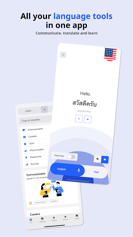 দ্বিভাষিক লাইভ ভয়েস কমিউনিকেটর - আপনার ভাষায় কথা বলুন, তাত্ক্ষণিক AI অনুবাদ পান, এবং ভাষা জুড়ে বাস্তব কথোপকথন করুন৷