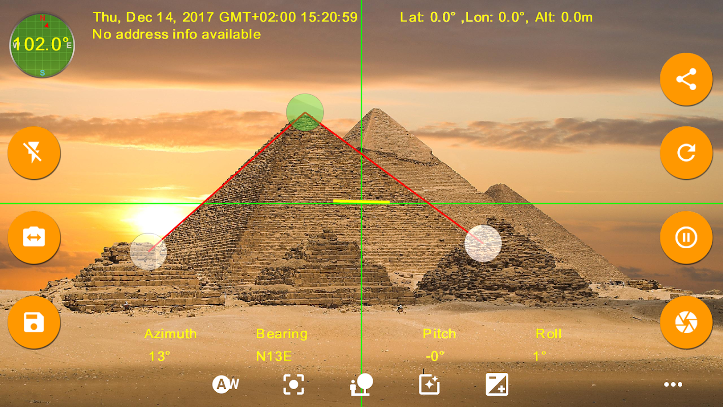 •Leveling option displays pitch and roll angles as line, square or circle which makes it easier to align your device.