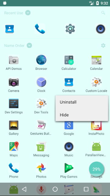 -- long click on app to open operation menu