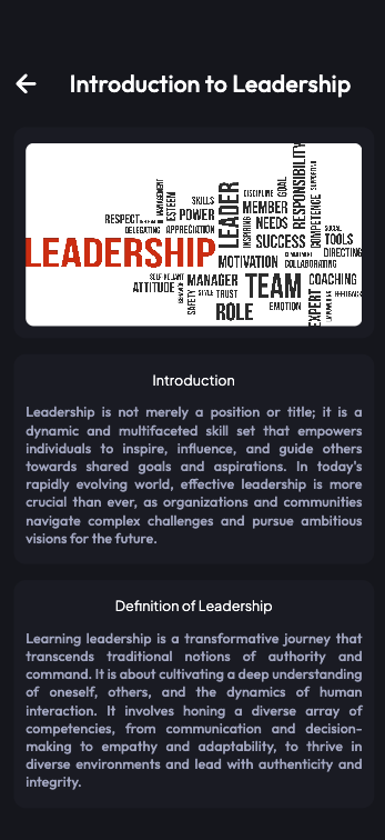 আমাদের অ্যাপটি আপনাকে নেতৃত্বের মৌলিক বিষয়গুলি শেখানোর জন্য তৈরি করা হয়েছে