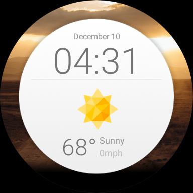 লিফলেট বাস্তব সময় আবহাওয়া আপডেট সঙ্গে একটি ছোট ঘড়ি মুখ. এটি সব পরিবর্তনশীল ব্যাকগ্রাউন্ড সঙ্গে, একটি কাগজের ছোট ছোট টুকরা উপর ফিট করে. আপনার কব্জি একটি ঝাঁকুনি সঙ্গে আবহাওয়া, তাপমাত্রা, এবং বাতাসের গতি পান. অ্যানড্রইড পরিধান সঙ্গে সঙ্গে অথবা একটি উইজেট হিসাবে আপনার ফোন উপর কাজ করে.