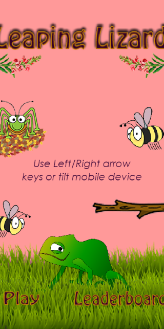 In this infinite jumper you play as Larry the Lizard as he searches for his next bug to eat. Help him climb up the tree branches using the arrow keys or by tilting your device. Larry likes grasshoppers as they give him a small boost.