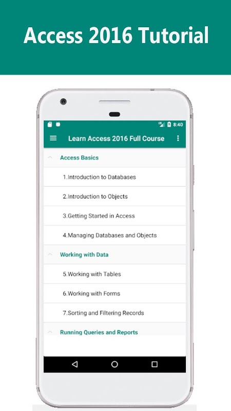 This App has been designed for computer users who are willing to learn MS Access 2016 in simple steps and they do not have much knowledge about computer usage and Microsoft applications. This tutorial will give you enough understanding on MS Access 2016 from where you can take yourself at higher level of expertise.
