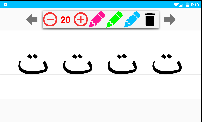 Arabic and English alphabet When the child presses the picture of the character, a writing pad appears in the letter indicated by the child