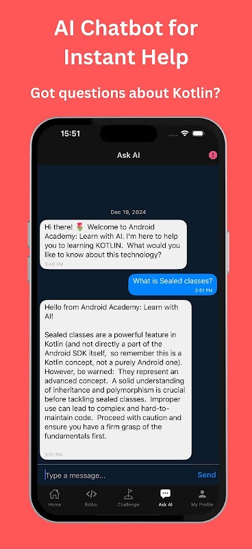 AI-চালিত শিক্ষা: আপনি শুধু শুরু করছেন বা একজন অভিজ্ঞ ডেভেলপার, আমাদের AI আপনাকে সম্পূর্ণ শেখার প্রক্রিয়ার মাধ্যমে গাইড করে, উপযুক্ত ব্যাখ্যা এবং সমর্থন প্রদান করে।