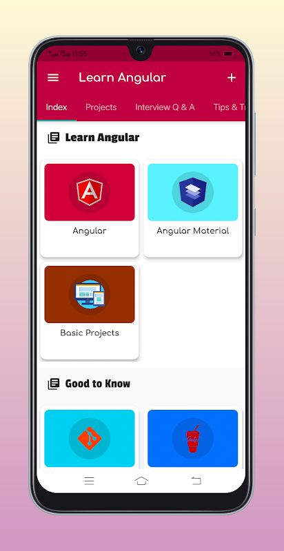 শিখুন কৌণিক হ'ল একটি সহজ টিউটোরিয়াল অ্যাপ্লিকেশন যা কৌনিক 10 টি সহজ এবং সহজ উপায়ে শেখানোর জন্য ডিজাইন করা হয়েছে। অতিরিক্তভাবে, আপনি কৌনিক সিএলআই, এনপিএম, জাভাস্ক্রিপ্ট এবং টাইপস্ক্রিপ্টের প্রাথমিক ব্যবহার শিখতে পারেন।
