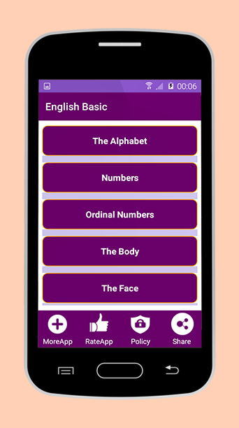 শিক্ষানবিস অ্যাপ্লিকেশন আপনি শিখতে পারেন কিভাবে শব্দভান্ডার এবং পড়া লিখতে এবং শব্দভান্ডার সঠিকভাবে উচ্চারণ করার উপায় সম্পর্কে জানুন সঙ্গে ইংরেজি ভাষা শিখতে জন্য অ্যাপ্লিকেশন ইংরেজিতে সব মৌলিক শব্দভান্ডার অন্তর্ভুক্ত করা হয়েছে।