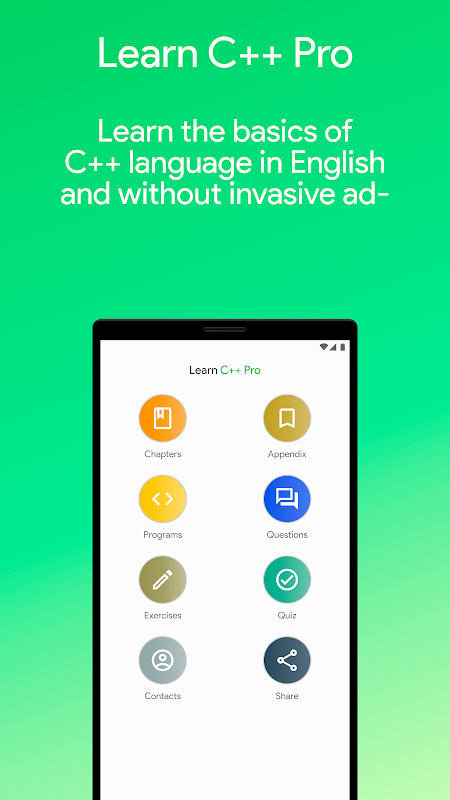 আপনি বিজ্ঞাপন ছাড়া এবং বই ব্যবহার না করে সি ++ প্রোগ্রামিং ভাষা শিখতে চান? এই চমত্কার আবেদন ডাউনলোড করুন!