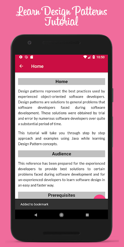 "Do you find difficulty in learning Design Patterns? If so, you find the right application to learn Design Patterns This app helps you learn Design Patterns from basic to advanced. All tutorials are presented in a coherent and clear way for you to facilitate your learning. Here are some features in this app: