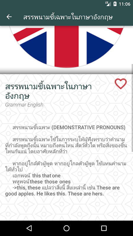 ইংরাজী ব্যাকরণ অ্যাপ্লিকেশনগুলি ইন্টারনেটের সাহায্য ছাড়াই ব্যবহার করা সহজ হয়ে ডিজাইন করা হয়েছে। এটি যে কোন জায়গায়, যে কোন জায়গায়, খুব আরামদায়কভাবে অনুশীলন করা যেতে পারে এবং ব্যাকরণে অনেক পাঠ রয়েছে।