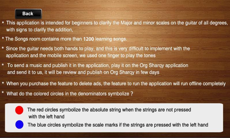 The guitar learning app is the best app for those looking to learn eastern and western shrines and peace. We have been keen to add the feature of teaching Western shrines, the Majors, the Minor, and the eight basic eastern shrines (Ajam, Hijaz, Nahawand, Kurds, Rast, Bayati, Sikah and Sabah) where there are Within the application there are 56 pictures through which you can choose the maqam of any degree, and signs indicating the maqam scale will appear on the guitar, enabling you to understand and absorb the keys and tones of each maqam and at any degree.