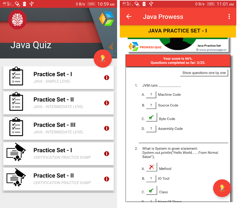 বস্তুনিষ্ঠ শিক্ষা এবং আন্তর্জাতিক শংসাপত্র প্রস্তুতির জন্য জাভাতে ইন্টারেক্টিভ কুইজে 150 টিরও বেশি প্রশ্ন রয়েছে।