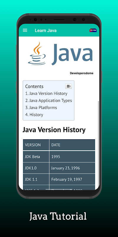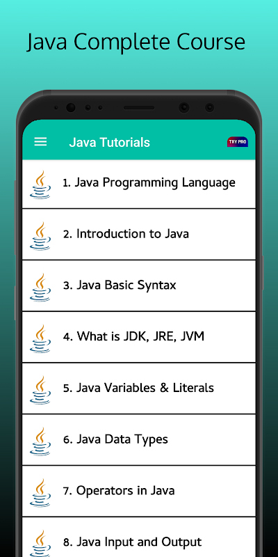 জাভা টিউটোরিয়াল একটি বিনামূল্যের অ্যান্ড্রয়েড অ্যাপ যা জাভা শেখা সহজ করে তোলে